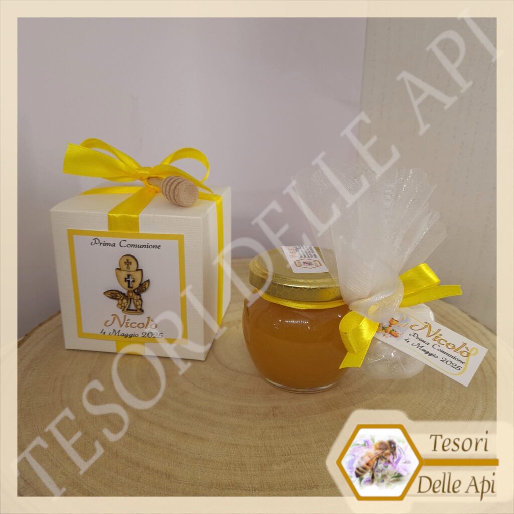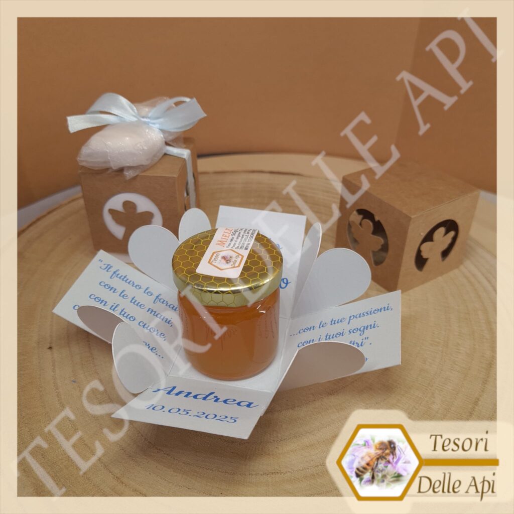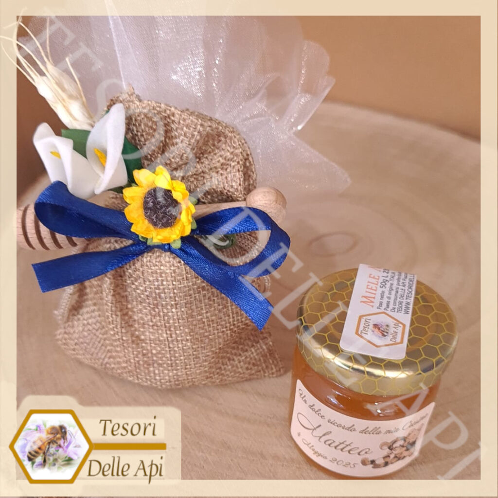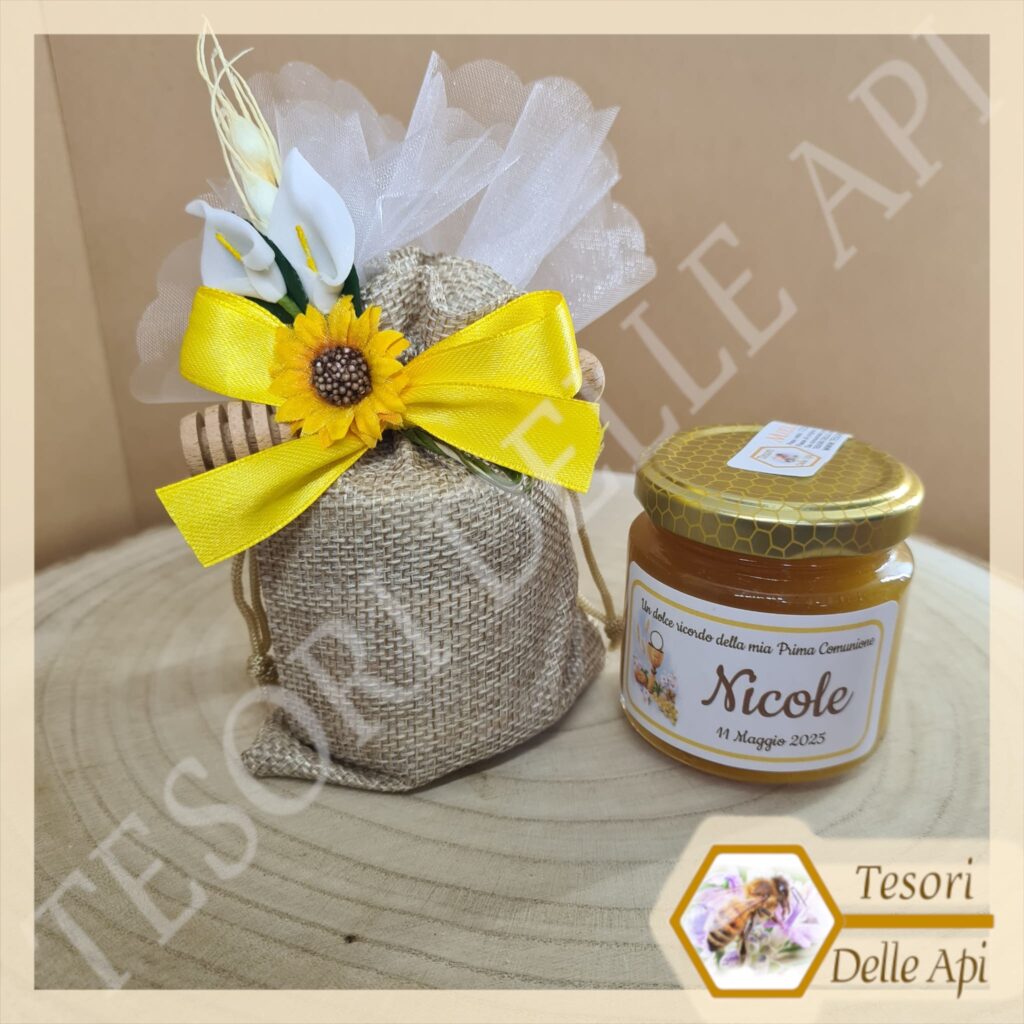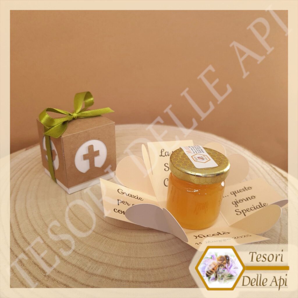 Donare e personalizzare una bomboniera di miele per una comunione o cresima significa offrire un dono simbolico ricco di significato e dolcezza. Il miele rappresenta la purezza, la grazia e la dolcezza dei sacramenti, rendendolo un omaggio perfetto per celebrare questi momenti spirituali unici.