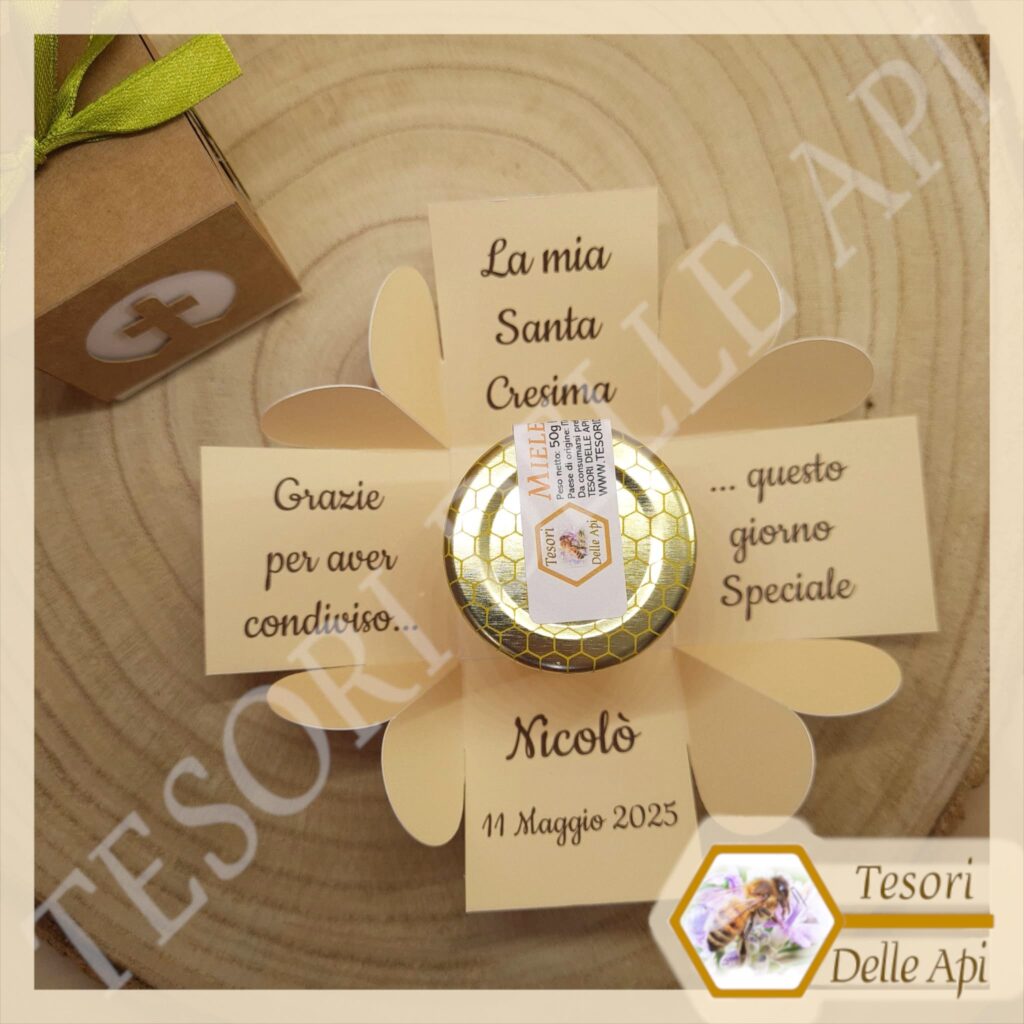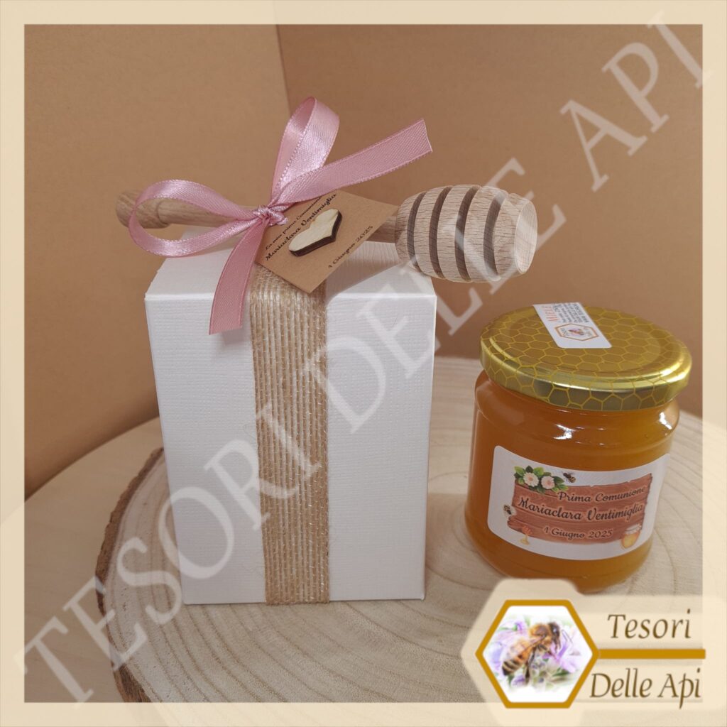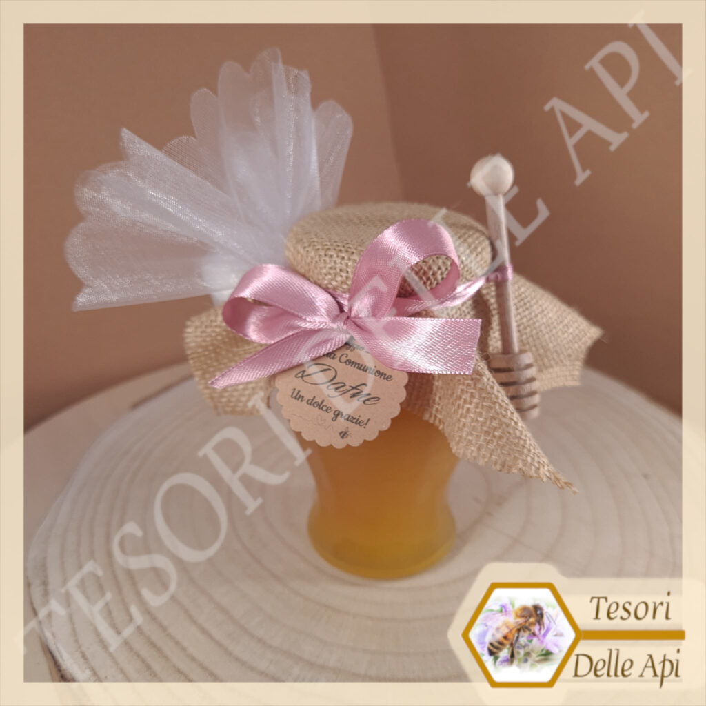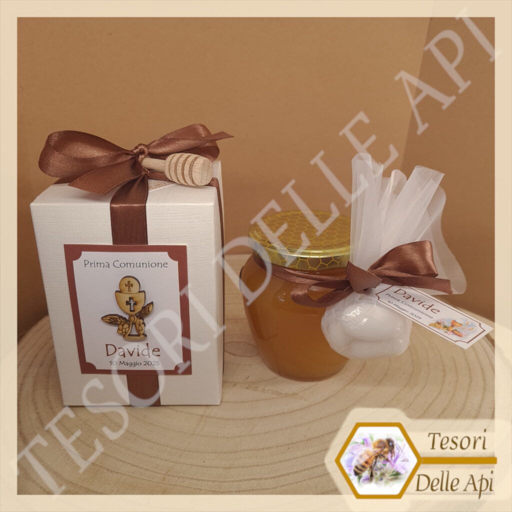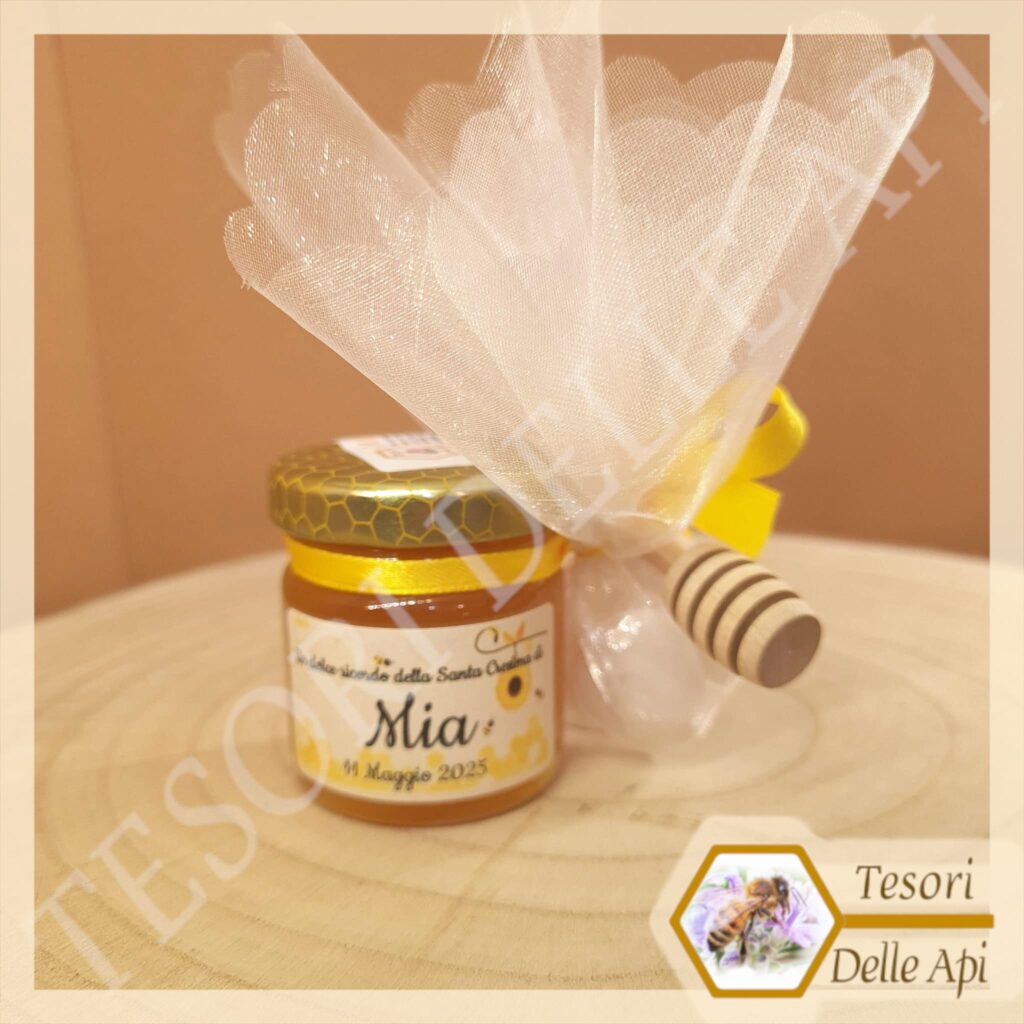 Donare e personalizzare una bomboniera di miele per una comunione o cresima significa offrire un dono simbolico ricco di significato e dolcezza. Il miele rappresenta la purezza, la grazia e la dolcezza dei sacramenti, rendendolo un omaggio perfetto per celebrare questi momenti spirituali unici.