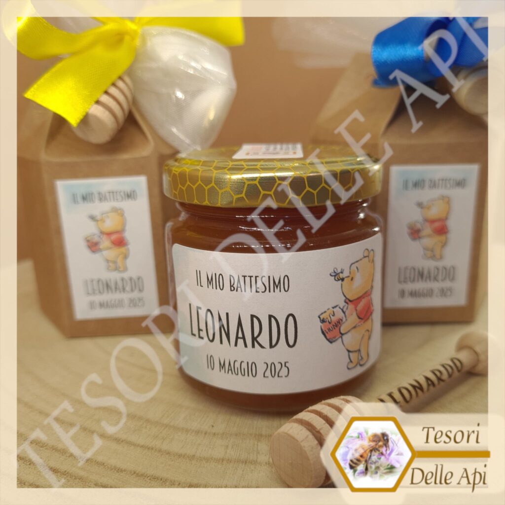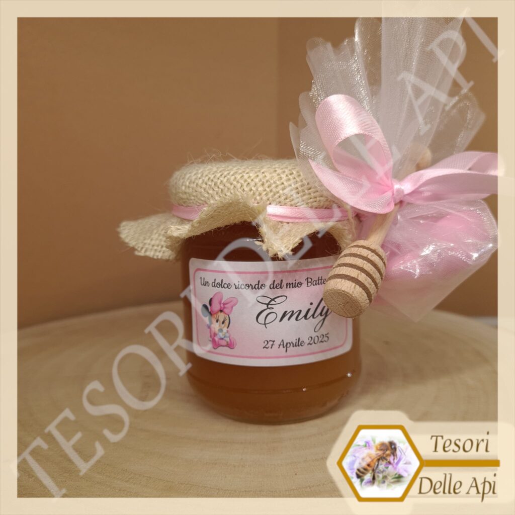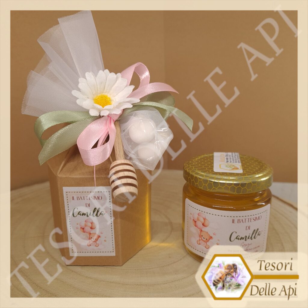 Regalare una bomboniera miele agli ospiti è un gesto semplice ma significativo, che racchiude l’augurio di una vita dolce e ricca di amore per il nuovo arrivato. Personalizzare una bomboniera di miele per un battesimo aggiunge un tocco speciale, trasformando questo dono in un ricordo raffinato, che celebra l’inizio di una nuova vita con dolcezza e gratitudine.